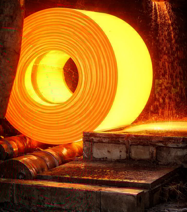 Warmgewalzte Stahlcoils werden bei hohen Temperaturen hergestellt, wodurch das Material gut formbar ist.